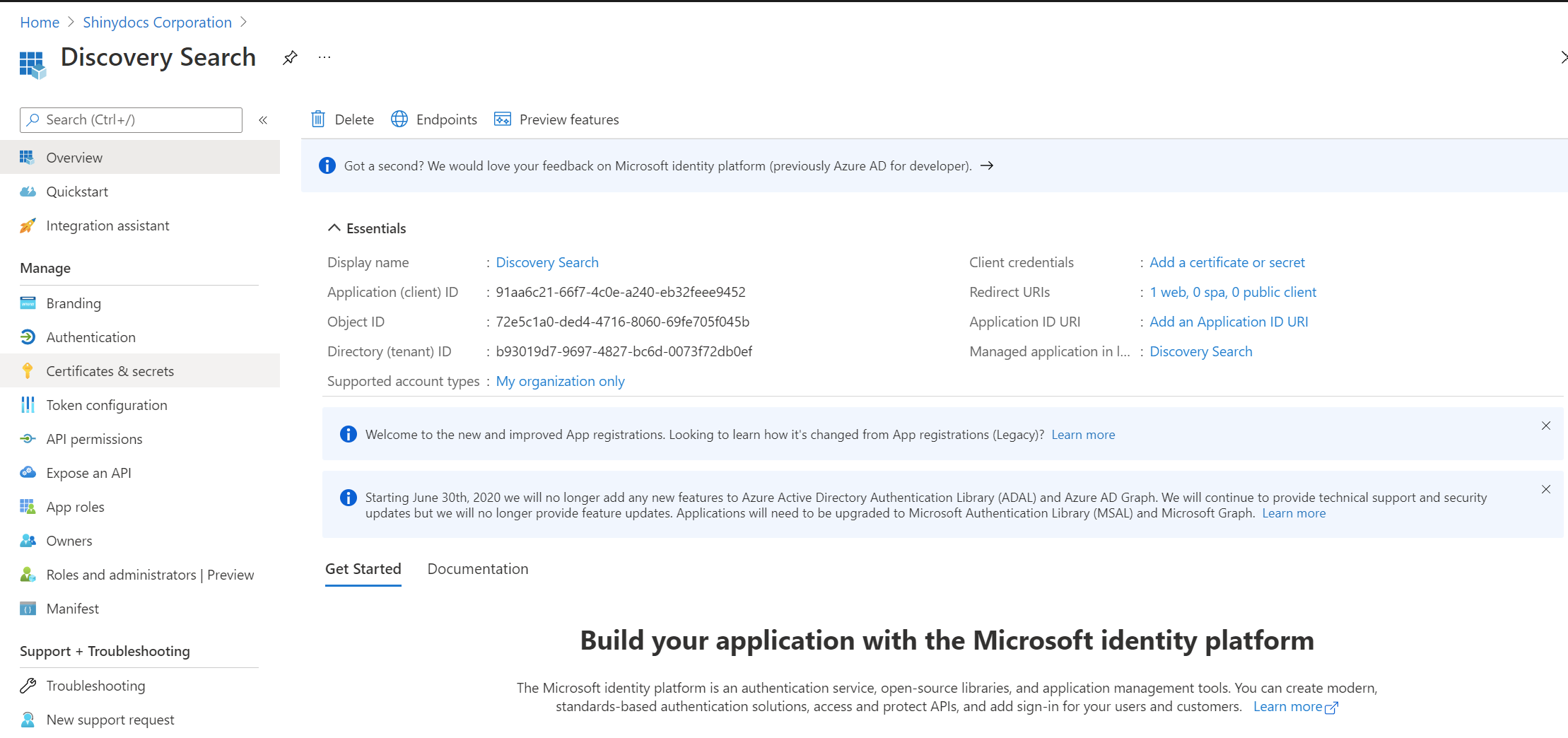 Redirect URIs: This should be the URI to the Discovery Search server, including the /azuread/success path (for example, https://search.domain.com/azuread/success)
