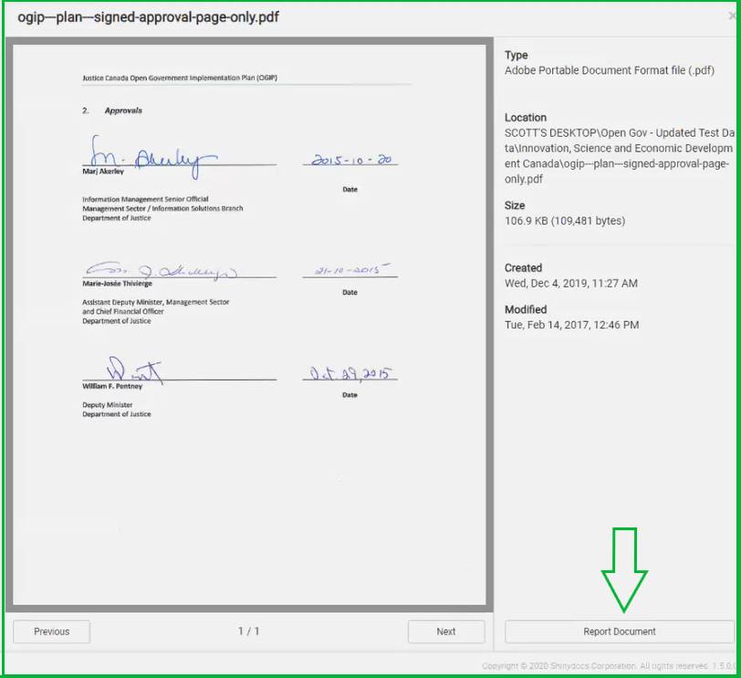 When this feature is enabled, users may report documents that should not be displayed by clicking the Report Document button in the document preview pane.