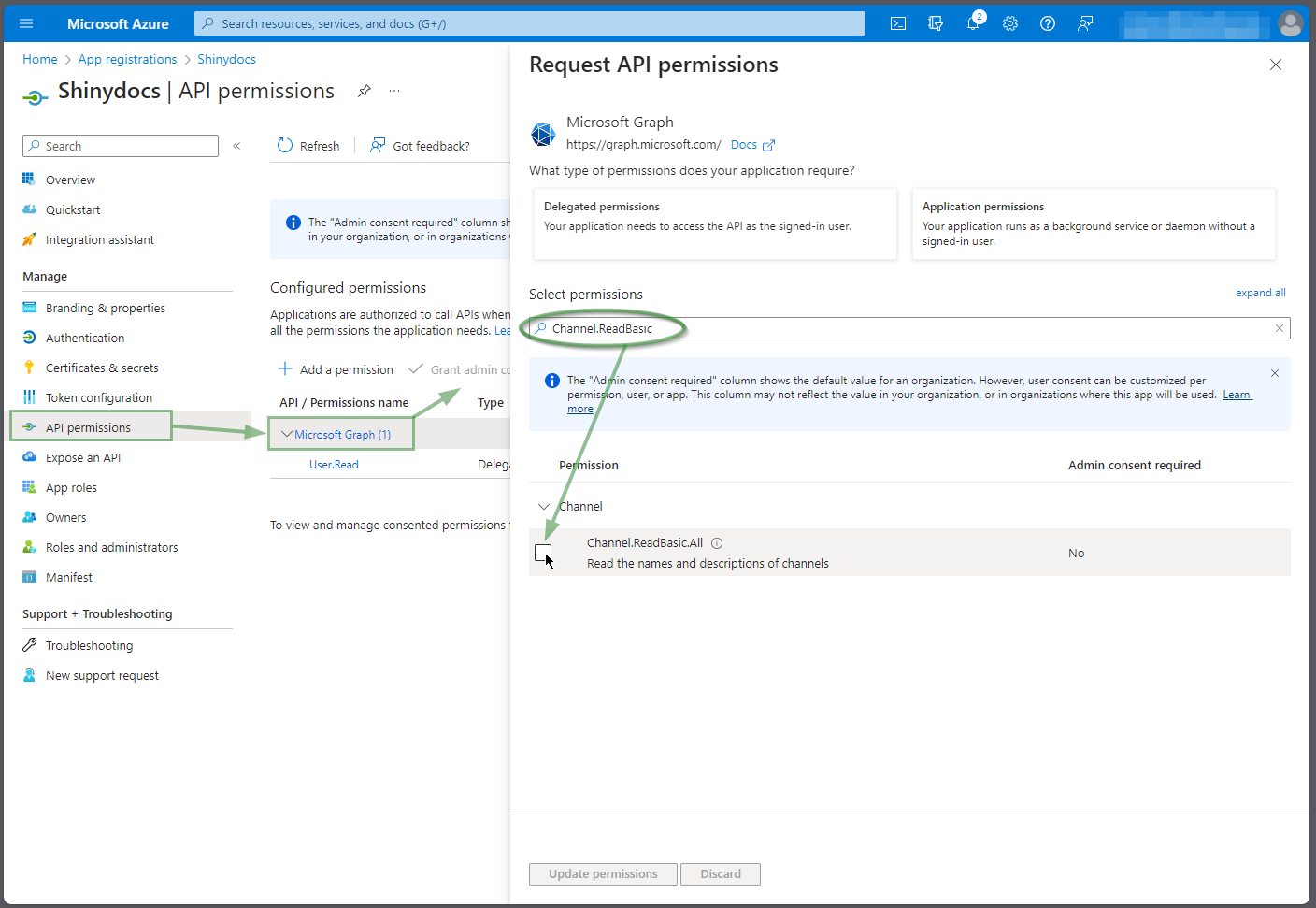 Click on Microsoft Graph from the Configured Permissions list