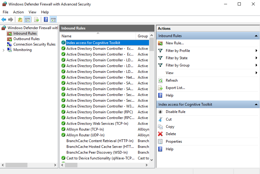 Open Windows Defender Firewall with Advanced Security and select Inbound Rules