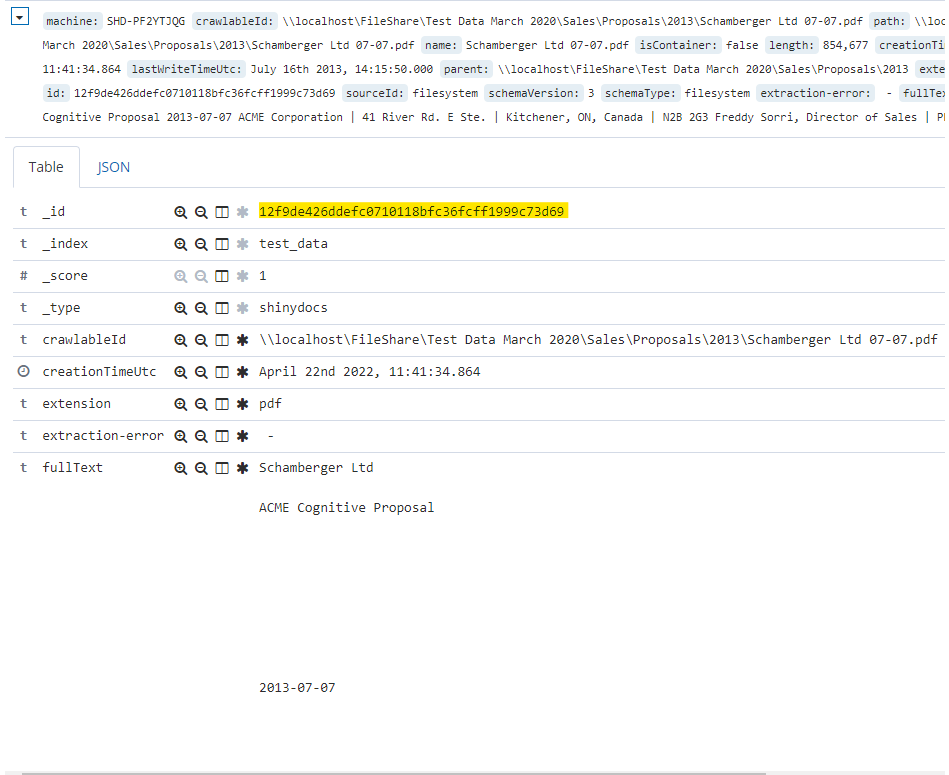 First, navigate to the Discover tab in the Visualizer. Locate your chosen representative document in the index, ensuring that the document has extracted text. Take note of this document's unique identifier, its _id, by copying it and saving it in a convenient location, such as a Notepad file. You should repeat this process for each of your representative documents.