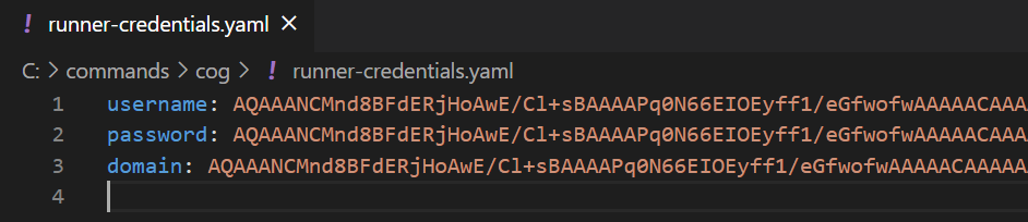 3. A file containing the encrypted domain, username and password will be created. This file is called runner-credentials.yaml: