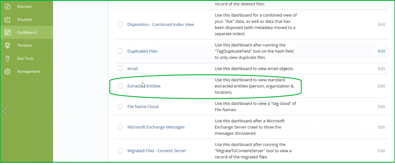 Visualizer displays all of the documents that have had entities extracted using fulltext. In our example, we are showing the basic field entities Person, Location and Organization.