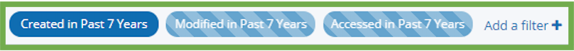 To enable a filter, use the cursor to hover over it. For example, hover over the Created in Past 7 years filter. Click Enable filter.