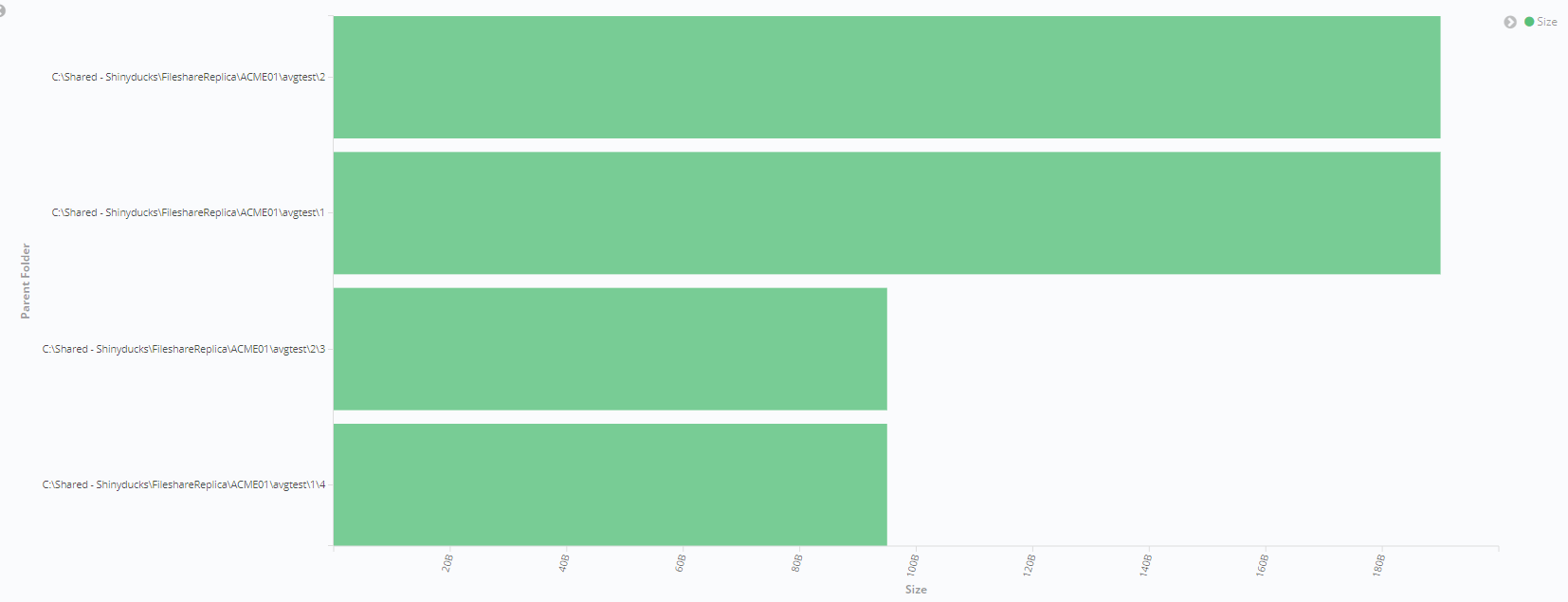Displays in vertical graph, the top 5 parent folders based on size