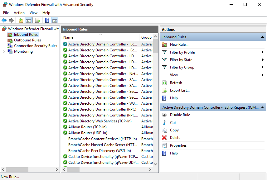 Open Windows Defender Firewall with Advanced Security and select Inbound Rules