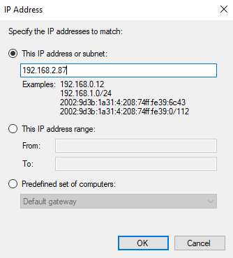 In the new window, select This IP address or subnet and enter the IP address of the machine running Cognitive Toolkit. Click OK