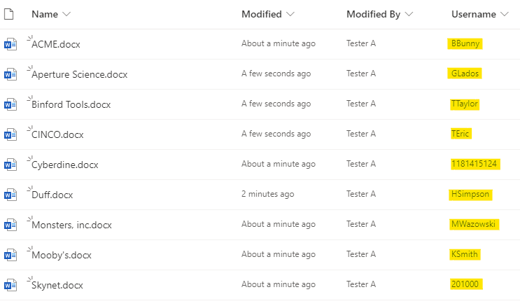 For example, in Microsoft® SharePoint there are files that have a column called “Username”. Some of the values are traditional names and some usernames are just numbers.