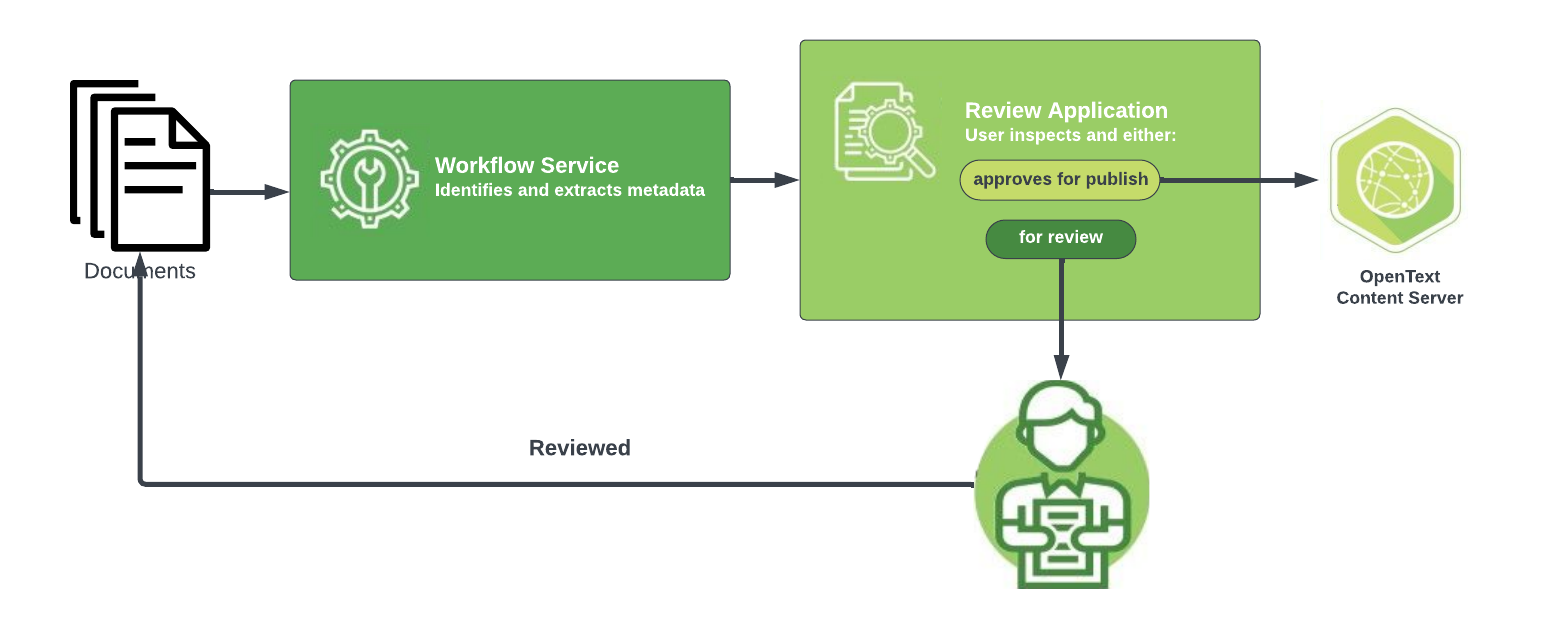 The Workflow service utilizes three components, two of which are part of the Cognitive Toolkit, to automate the migration of documents into a Content Server: