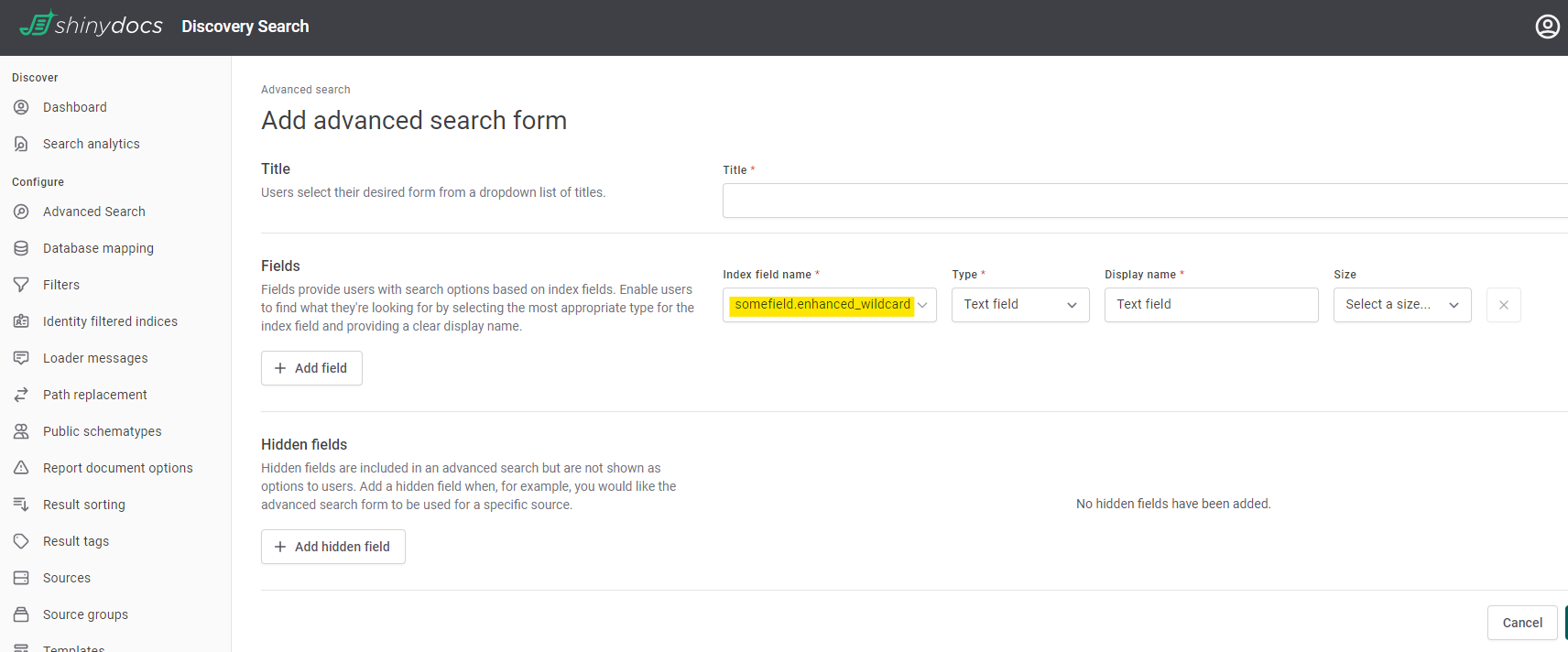 <field_name>_enhanced_wildcardThe enhanced_wildcard fields can be used with Shinydocs Discovery Search once applied