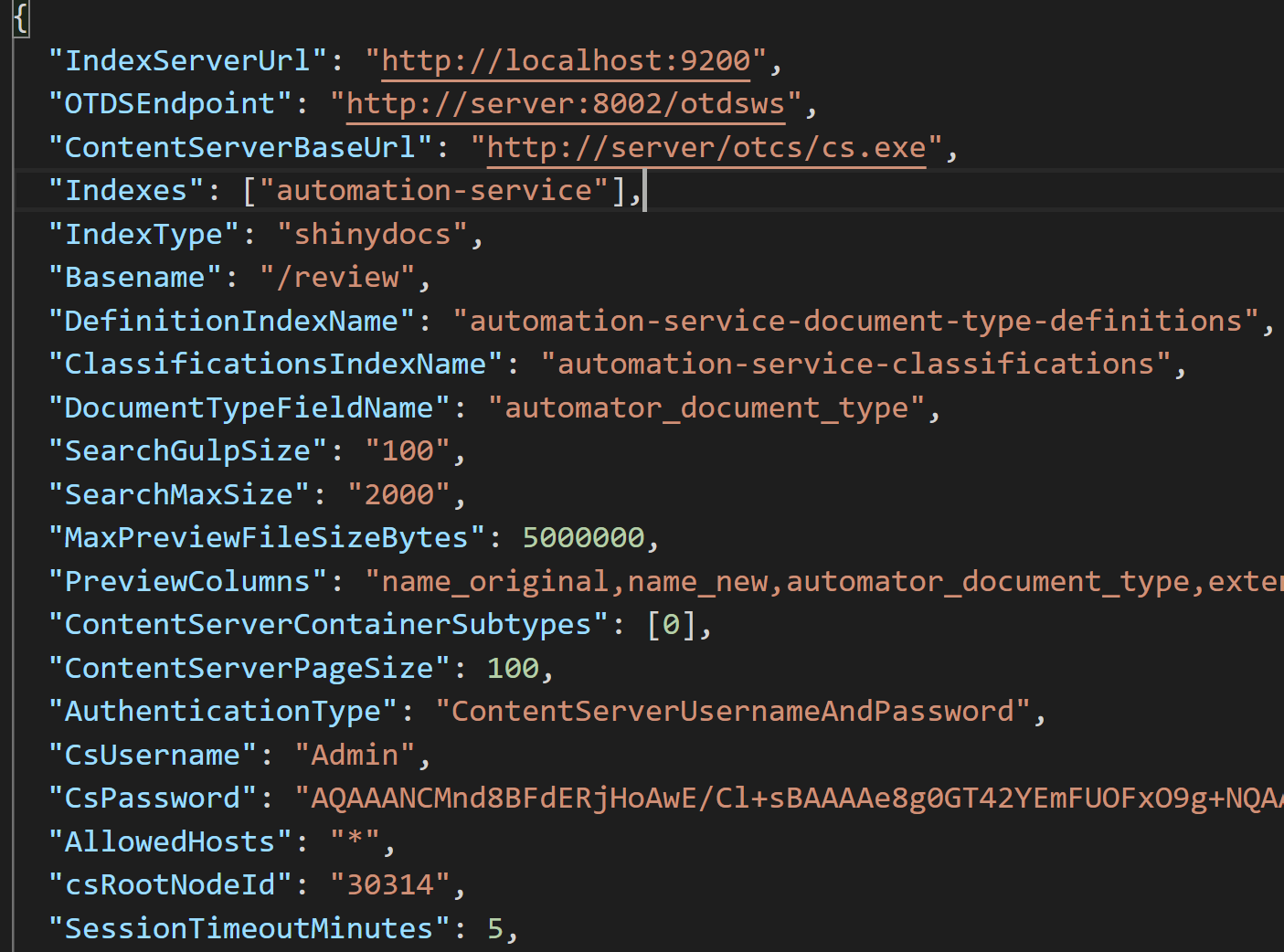 ContentServerBaseUrl- the url to content serverOTDSEndpoint- the otds urlcsRootNodeId- the top level folder used for folder brower, if it is a database snapshot it will likely be the same