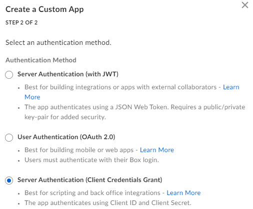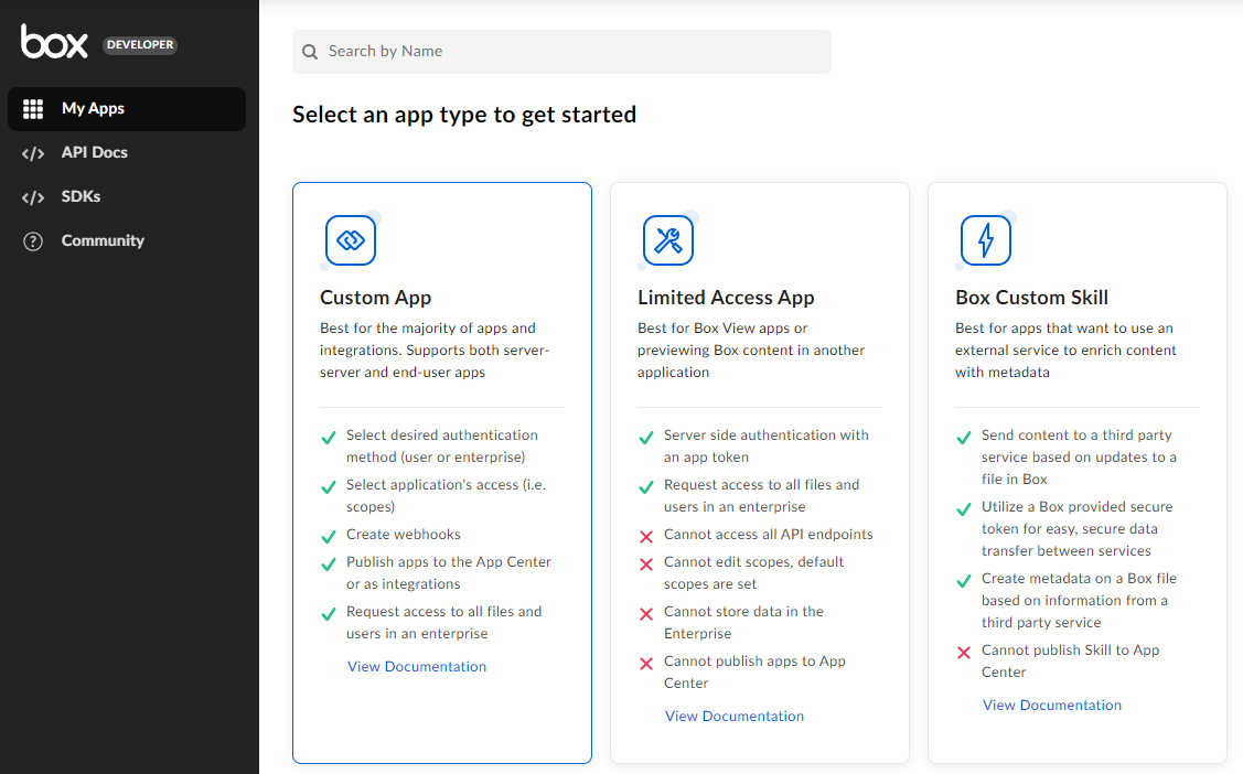 Box Dev Console should automatically take you to your new application’s Configuration page. If not, find your newly created app in My Apps and click on the Configuration tab.