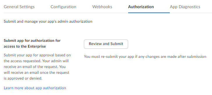 Within the app details (https://app.box.com/developers/console/app/#######), click on the Authorization tab.