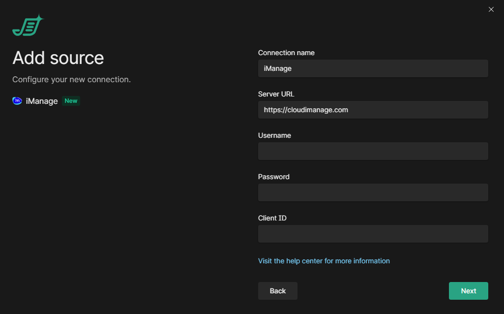 iManage on premise/legacy cloud: https://yoururl.comUsername: The username of the iManage account