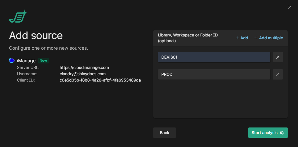 Now you can choose to analyze a specific iManage library, workspace, or folder using the moniker or ID.