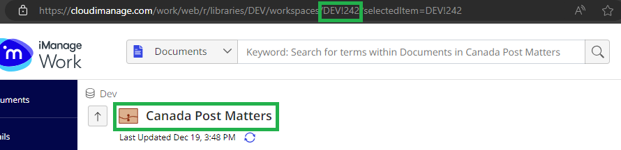 DEV!242 is an example value for a specific matter in iManage