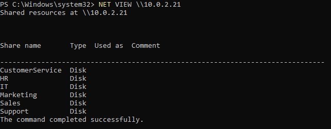 Collecting the list of shares can be time consuming, to assist with this process the following commands may be helpful when surveying the target servers.