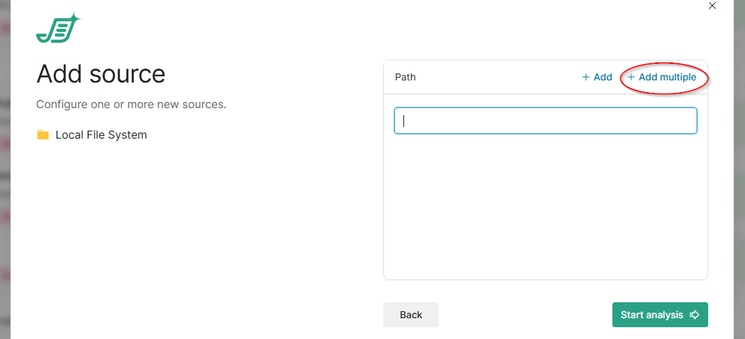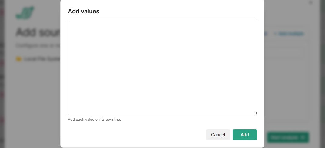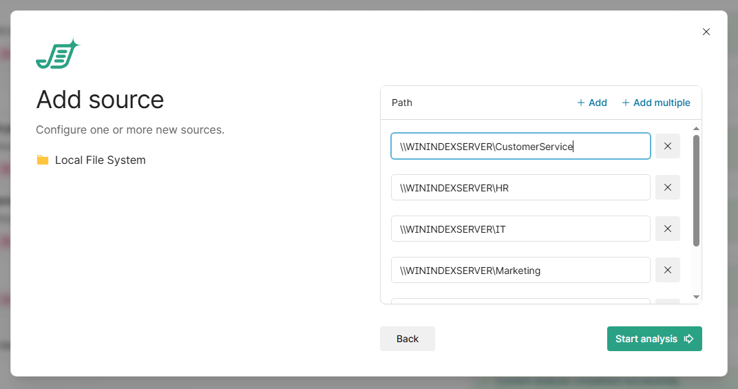When adding multiple sources from a particular server, after selecting File System, you may add a list of shares, this can be from one server or many servers using list copied from Notepad.
