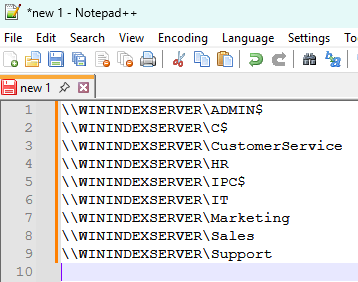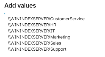 Be very careful not to include Administrative shares such as ADMIN$, IPC$, and likely C$ as these contain a scope of files that are not likely helpful to the Shinydocs Pro scanning process.