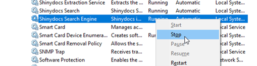 Return the folder C:\Program Files\Shinydocs Professional\SearchEngine and locate the data folder.