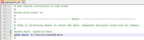 Create a backup of this file (i.e. opensearch.yaml.bak) then open the original in Notepad++ or Notepad.