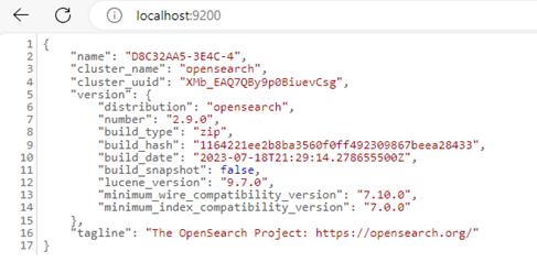 Wait for 2 to 3 minutes then access http://localhost:9200 from the browser.