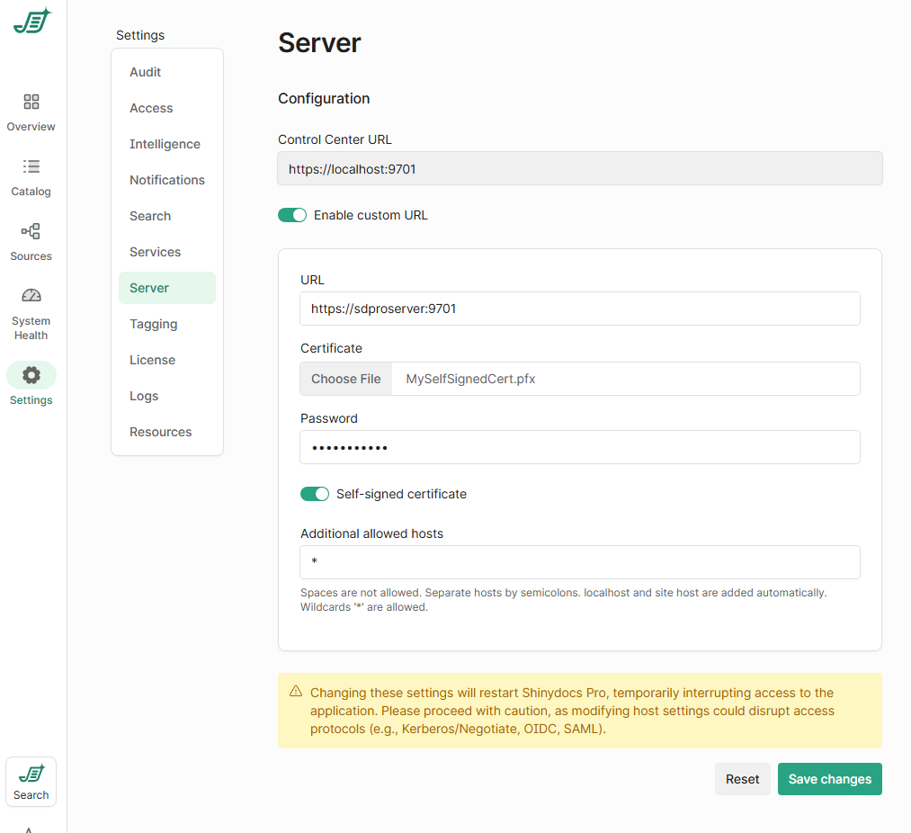 By default, Shinydocs Control Center is only accessible on localhost. To make it available to others on your network, you’ll need to configure the Server settings in the UI.