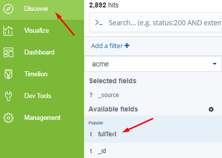 Navigate to the Discover Tab and you will see fullText now under the Available fields section