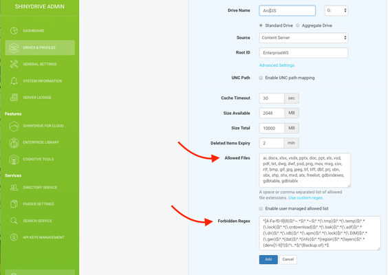 Note any file type that is added into the forbidden list will prevent a user from adding this file type into your ECM with Shinydrive Windows Desktop client