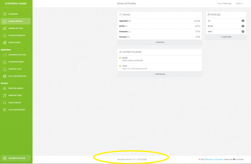 Shinydrive Service should be listed as an Installed Module along with its Version #